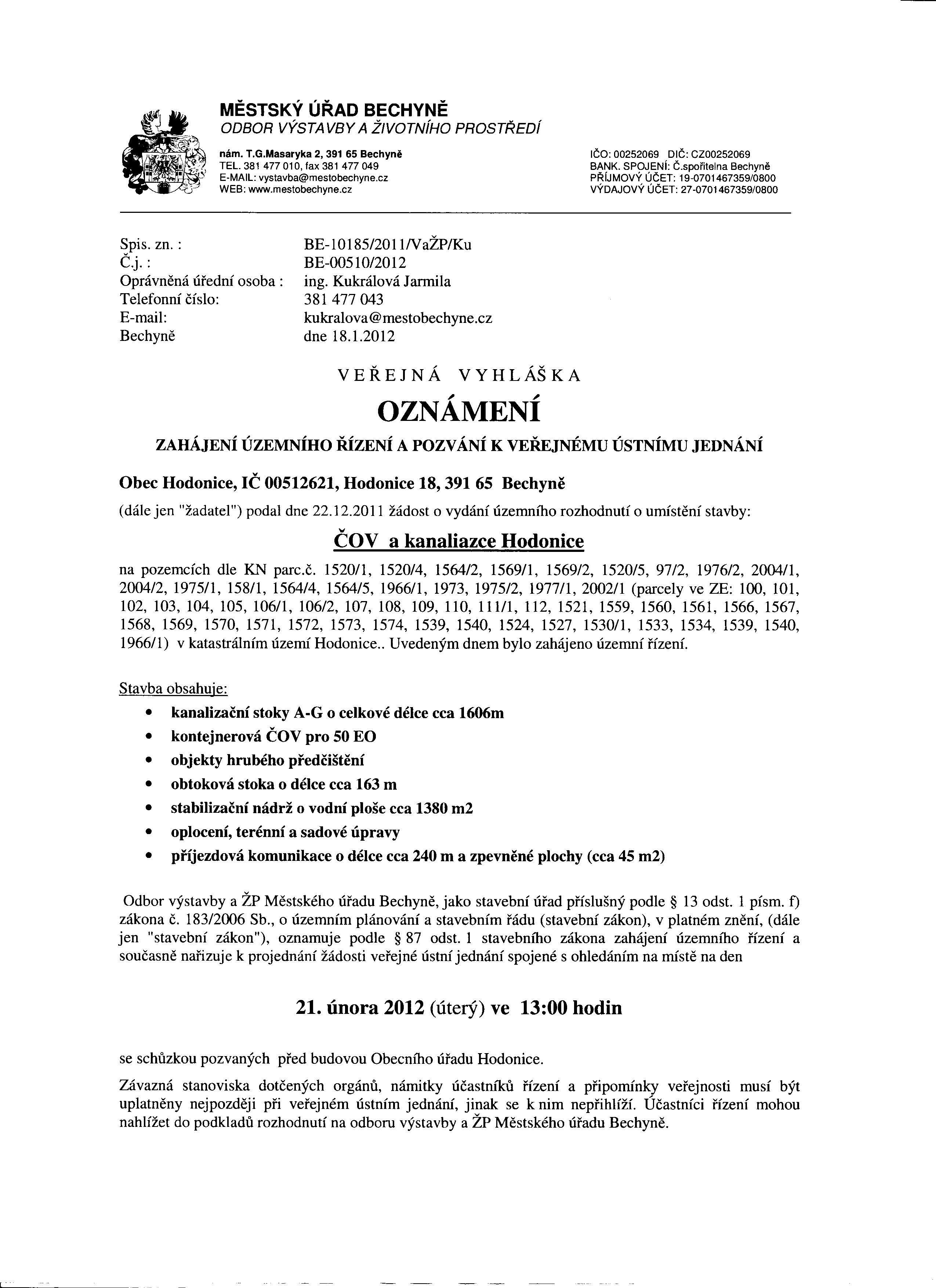 | Oznameni c.103.jpg | Oznámení zahájení územního řízení a pozvání k veřejnémuústnímu jednání | 619.4 Kb |