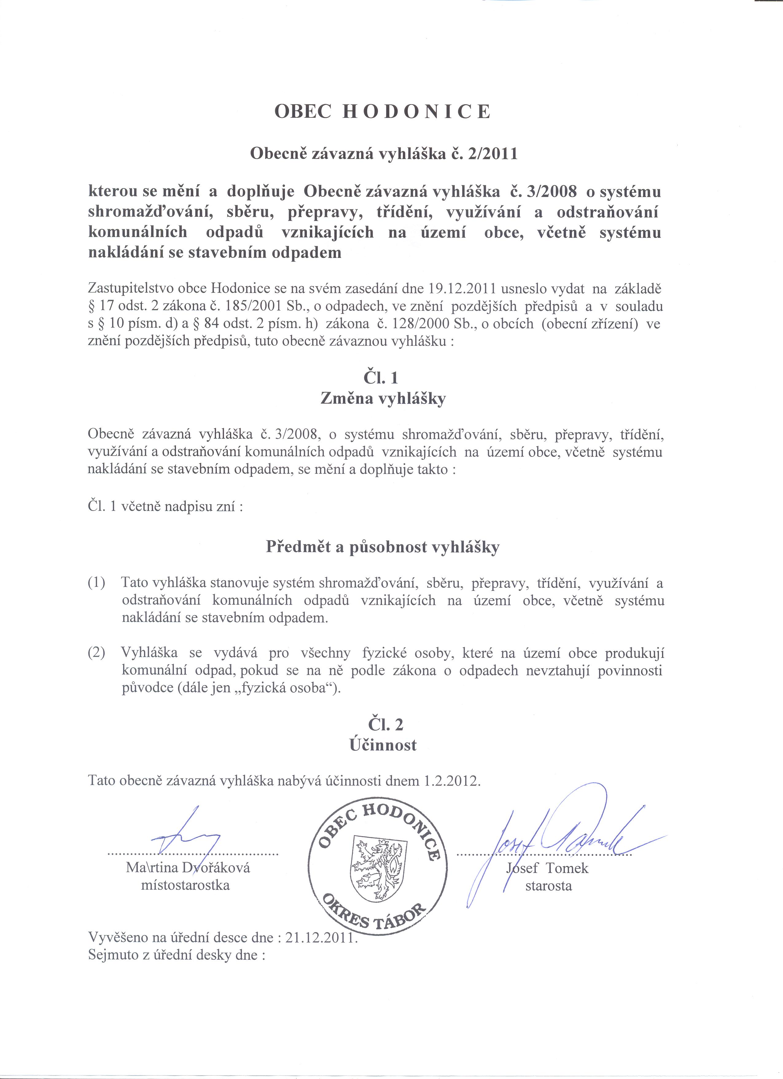 | Vyhlaska c.2.2011.jpg | Vyhláška č. 2/2011 | 575.1 Kb |